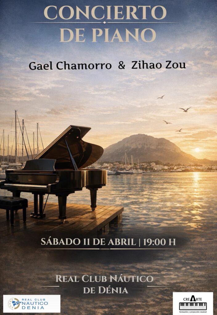 El Real Club Náutico de Dénia reafirma, una vez más, su firme compromiso con la cultura y con el impulso del talento local, abriendo sus puertas a propuestas que enriquecen la vida social y artística de nuestra ciudad. En esta ocasión, acoge con orgullo el concierto de piano de Gael Chamorro y Zihao Zou, una cita que une excelencia musical, sensibilidad artística y el incomparable entorno de nuestra sede social y deportiva.