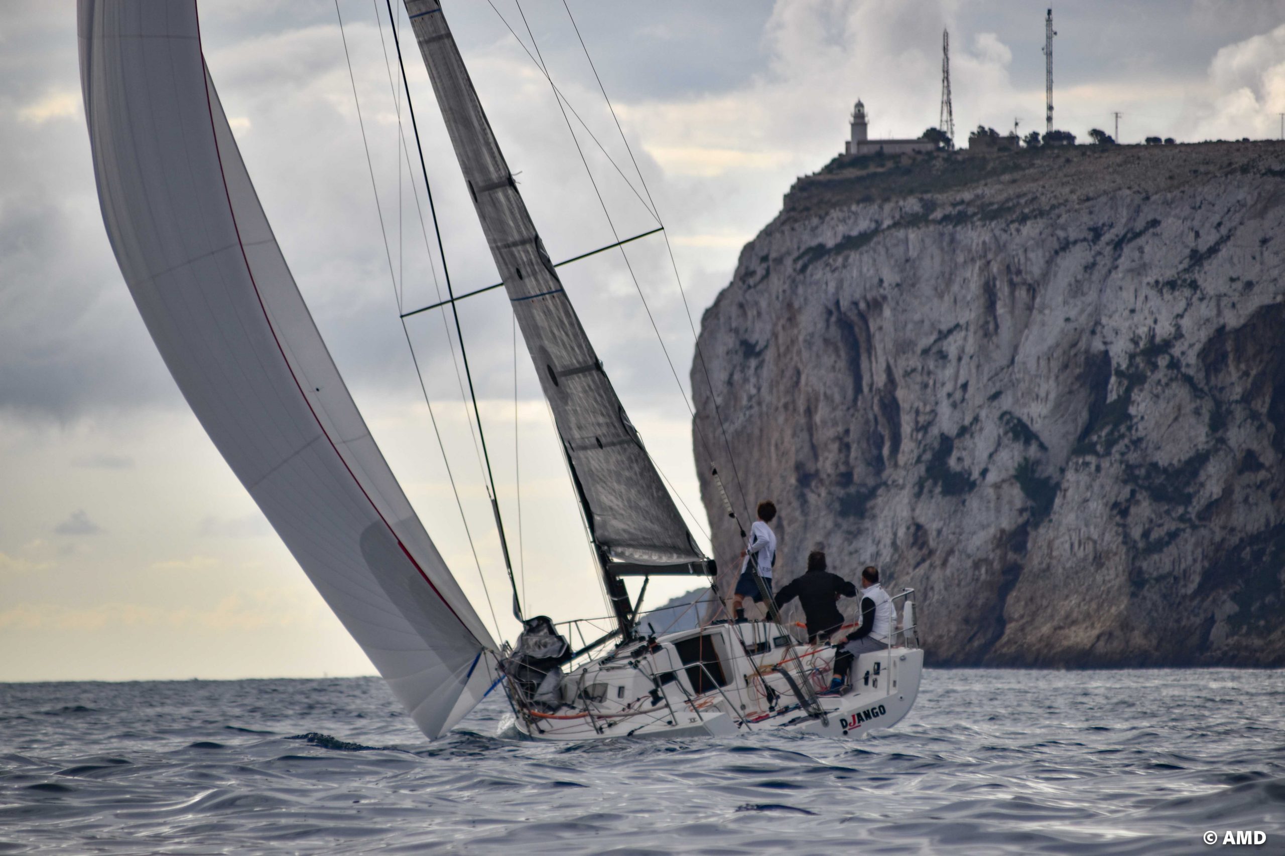 A las 13,17h. la embarcación Django llegaba a la boya de desmarque situada en la bahía de Moraira, seguida muy de cerca por la embarcación Café del Mar y Adrenalin, que ponían rumbo a Ibiza en una travesía, hasta el puerto de San Antonio (Ibiza), que transcurrió con poco viento y con una navegación aproximada de 4 nudos. A. La altura del islote de Conejera se quedaron sin viento, recuperando la brisa al llegar a la bahía de Ibiza, lo que permitió a las embarcaciones llegar a meta. A las 3,29 h de la madrugada del domingo 10 de Octubre llegaba a meta Django, seguido de Cafe del Mar y Adrenalin. El resto de embarcaciones fueron llegando a lo largo de la noche.