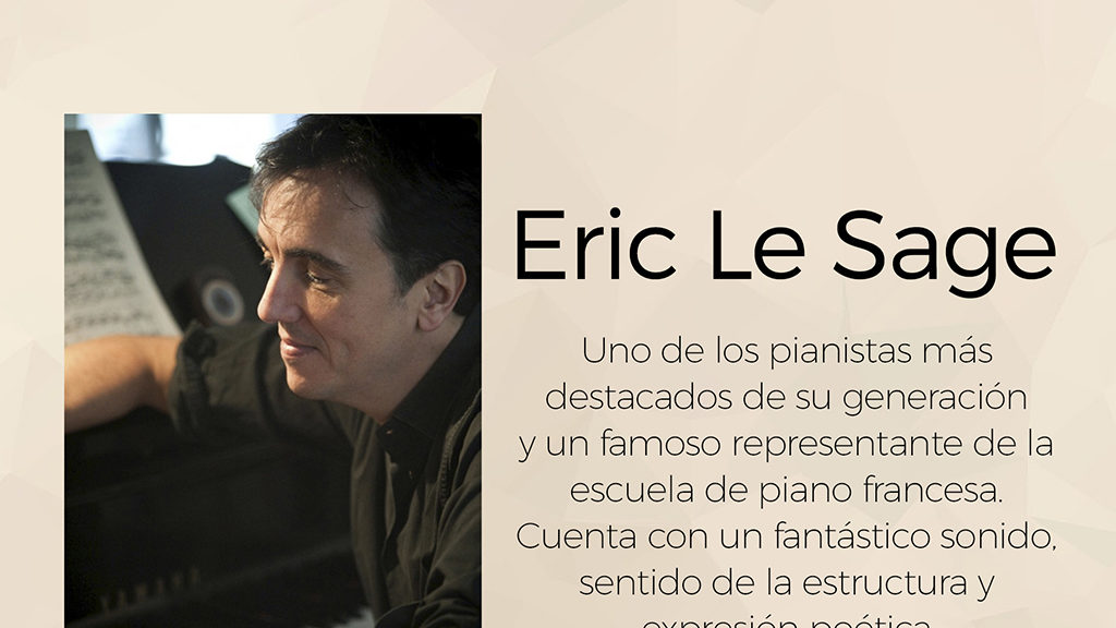 Eric Le Sage es uno de los pianistas más destacados de su generación y un famoso representante de la escuela de piano francesa. Cuenta con un fantástico sonido, sentido de la estructura y expresión poética. La Sage ha actuado con importantes orquestas a nivel mundial, como la Filarmónica de Los Ángeles, la Orquesta de Filadelfia, la Orquesta Sinfónica de Toronto o la Orquesta Sinfónica Saint-Louis, entre otras.